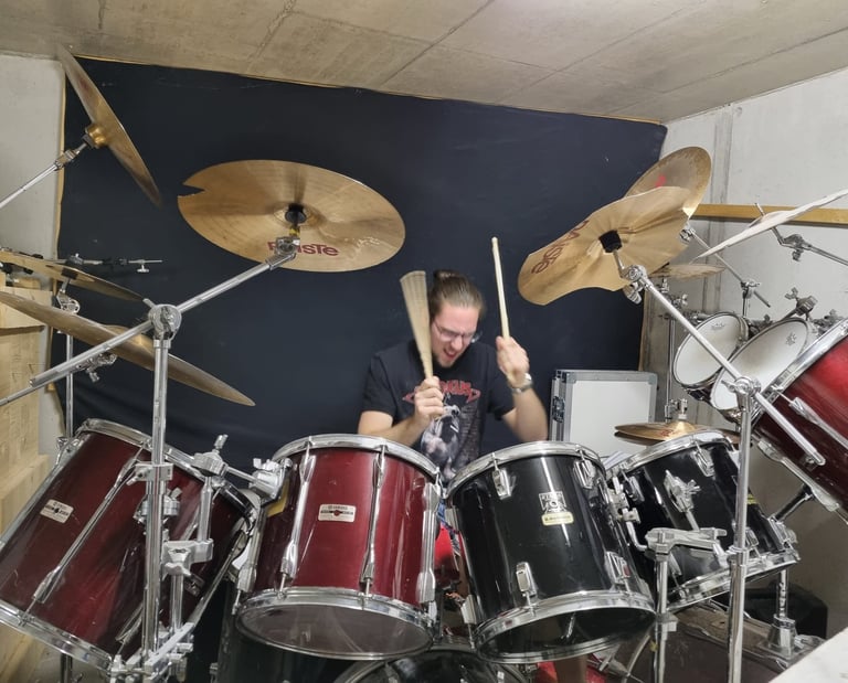 das Drum Off – hier stehen wir in voller Konzertlänge auf der Bühne und zeigen, was alles in uns und unseren Instrumenten steckt.